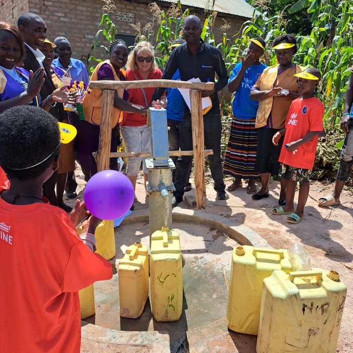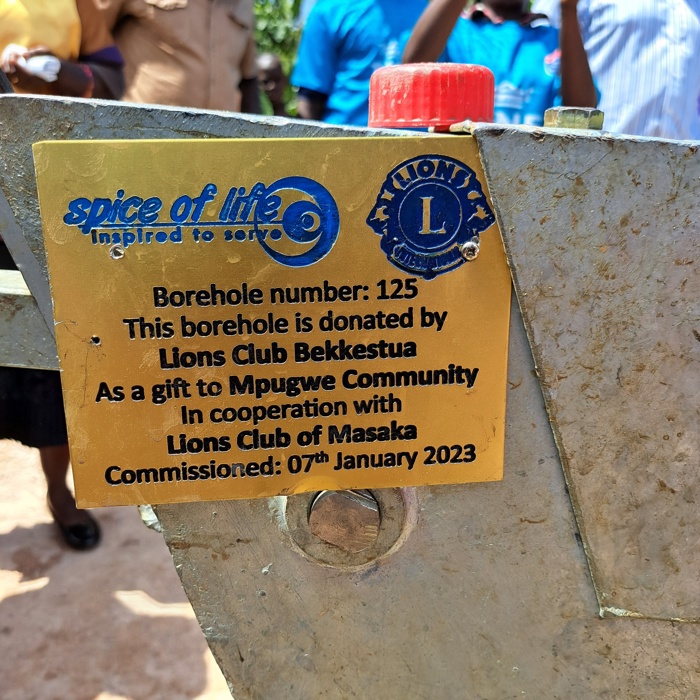 Uganda og Lions Norge . Det blir tatt vannprøver før brønnen bygges. Brønnen er en manuell pumpe.